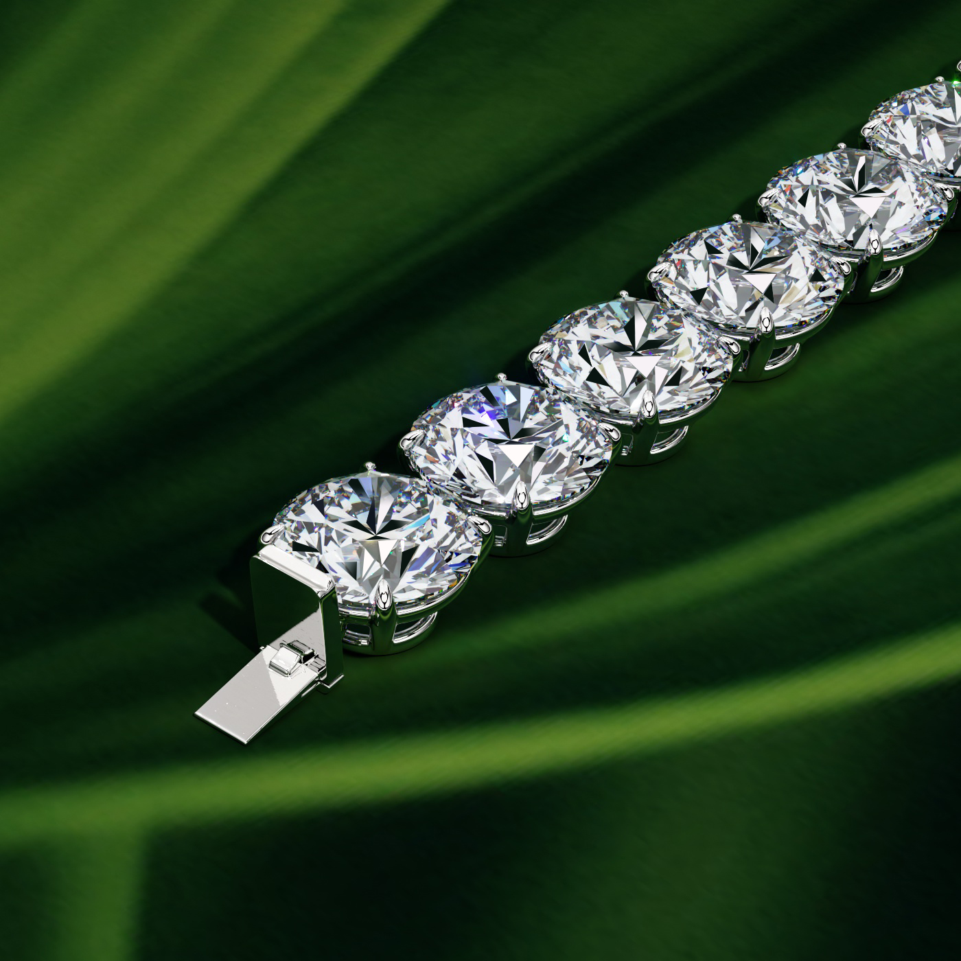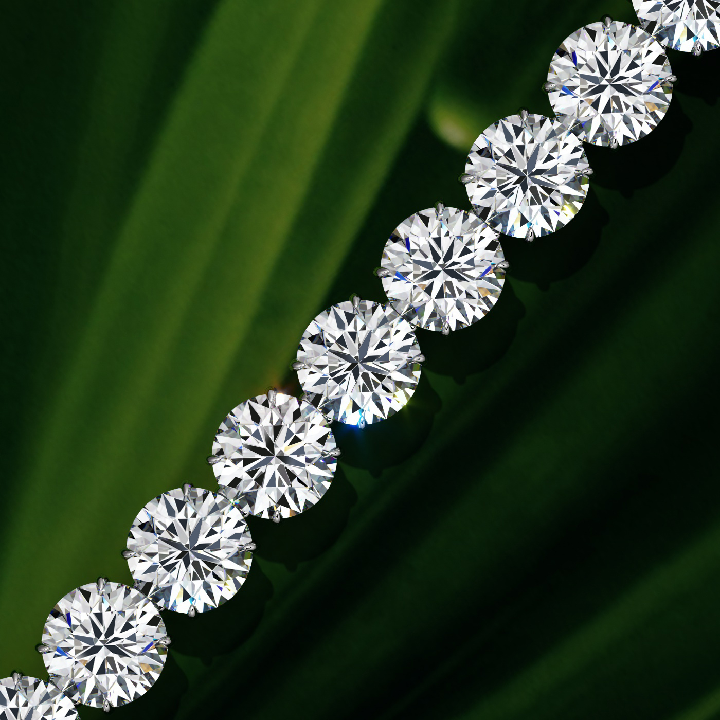 Composed of 17 round brilliants, each diamond is D colour grade, flawless or internally flawless, with a total weight of approximately 45.81 carats. This bracelet embraces the wrist with a fluid stream of brilliance and is set in a flexible, hand-crafted platinum mounting. Its impeccable design has a comfortable fit while showcasing the dazzling beauty of each diamond. This bracelet is ideal for both special occasions and adding a touch of luxury to everyday wear.